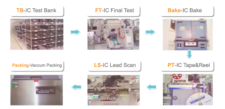 CR Micro provides convenient and fast finished products test service and has set up the finished products test center in East China and South China. Each production base provides 200+test and braid packaging equipment, which can meet the customers’ test and packaging needs for digital, analogue and mixed products. CR Micro is also capable of three temperature testing capacity and provides the professional and excellent testing and selecting services for domestic and overseas high-end electronic products.