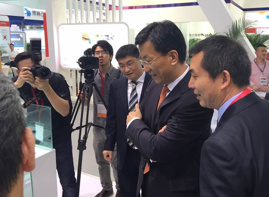 4月8日至10日,公司在深圳参展由工信部和深圳市政府等共同举办的第四届电子信息博览会。展会期间,工信部副部长怀进鹏等领导莅临我司展台参观指导。下属华润矽科“符合Qi标准的无线充电发送端控制电路CS4968”荣获“2016 CITE 创新产品与应用奖”。 公司展台主要围绕无线充电、绿色节能、物联网和LED照明四大应用方向,通过产品方案与应用场景相结合的方式,更直观地展示了公司的产品技术及其应用领域。